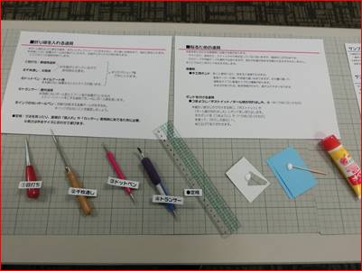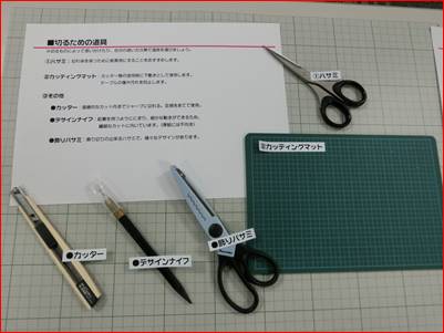 はさみ、定規、木工用ボンド、カッティングマット、ボール紙(※)、折り線を入れる道具(目打ち、千枚通し、ドットペンなど)