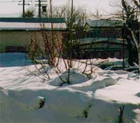 今年度の冬は、降雪量も平年並み(1961年〜1990年の30年平均値)との気象台の予報を受け、ニュートンのリンゴの木も11月末には冬囲いが終わり、すっかり雪に耐える準備を終えました。北陸地方では、昭和2年から18年周期で大雪が降ると言われていますが、昭和56年の豪雪から今年がちょうど18年目にあたる年です。大晦日からの寒波で既に新潟試験所構内も1.5mの積雪に囲まれ、すっかり冬景色に様変わりしました。ニュートンのリンゴの木もひっそりと雪の中でたたずんでいます。近年、雪に囲まれたお正月はなかったので大雪の予感がしますが、厳しい冬に耐えて、春先に待望の花芽がでることを祈っています。 (文責:清水) |