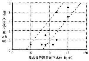 図−1 集水井設置に伴う地下水位の変化 |