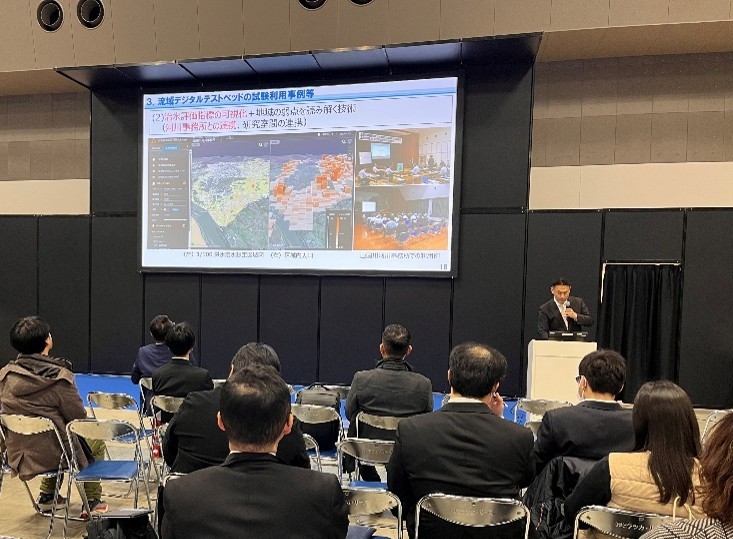 国土交通省では、令和7年10月よりサイバー空間上の流域の実験場「流域デジタルテストベッド」の試験利用を開始しました。2026年1月28日~1月30日開催の『G空間EXPO2026』において、流域デジタルテストベッドに関するブース展示および出展者セミナーでの発表を行いました。展示ブースには3日間で400名以上の方にお越しいただきました。