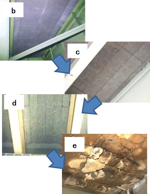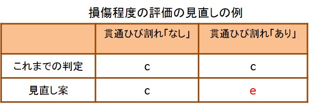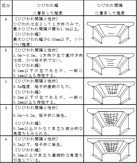 点検要領では、上記の損傷進行の各段階に対応して評価の区分(a〜e)がなされている。